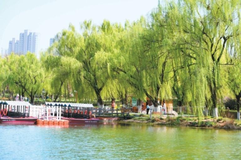 4月1日,大明宫国家遗址公园春意盎然,呈现一派生机盎然景象。