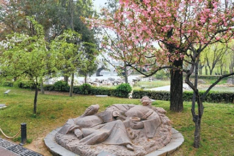 濯缨桥东侧有一组“杏园醉归”。几个唐朝装束的年轻人,骑着马,有人举杯,有人扶鞍,有人醉得趴在马背上。路过的家长停下脚步,指着雕塑对孩子说:“你看,这就是唐朝的状元。他们考中了进士,在这儿骑马游园,比过年还高兴。”小孩仰着脸看了一会儿,问:“那他们也要做卷子吗?”大人笑了,说:“比你们现在的考试难多了。”