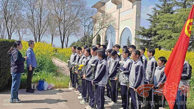 朵朵菊花寄哀思。全体师生依次敬献鲜花,学生列队献花、老师集体敬花、校长郑重献花,每一朵花都承载着对熊宁的敬仰与思念。在吕茜老师的带领下,全体师生高举右拳庄严宣誓:“人民为先,祖国至上;诚实勇敢,自律自强;奋发有为,誓作栋梁;振兴中华,再造辉煌。”铮铮誓言响彻墓园,是少年们告慰先烈的承诺,也是十年不变的青春宣言。