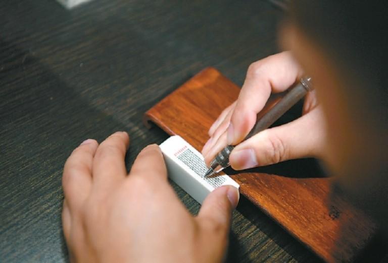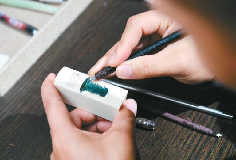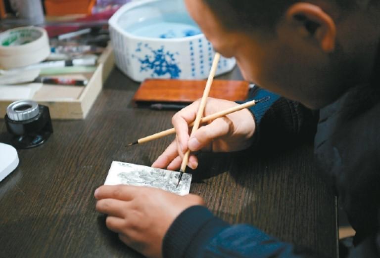 精湛技艺的背后,是日复一日的坚守。卢彦卓始终坚信,微雕的根基是书画与打磨,他坚持每日练习书法绘画、研习多种字体,同时深耕雕刻与填彩技法,在大量练习中不断精进。如今,他的作品涵盖文房器具与时尚配饰,深受不同群体喜爱。在行业协会与公益组织的支持下,他的创作之路愈发顺畅。2022年,他与师兄在陕西雕刻一条街成立工作室,既专注作品研发,也扛起技艺传承的使命。