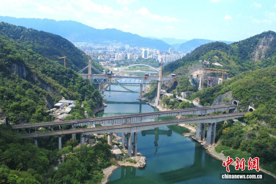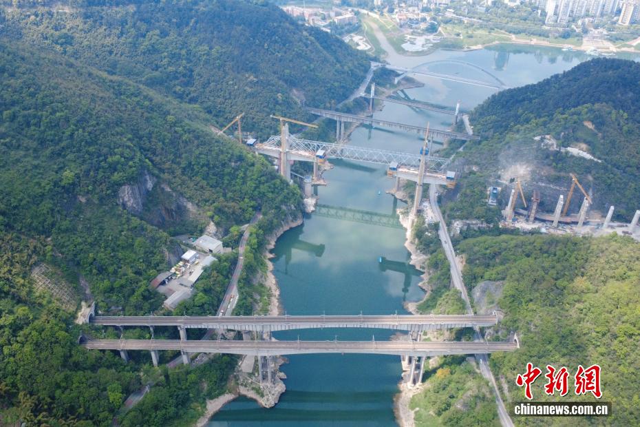 4月9日,记者在重庆北碚看到,嘉陵江上密集排列8座公路、铁路跨江大桥,形成“八桥叠翠”景观,远观非常震撼。重庆桥梁总数超过2万座,有中国“桥都”之称。重庆跨江大桥众多,且在技术难度、跨径长度等方面,频频创造“中国之最”和“世界之最”。图为嘉陵江上密集排列多座公路、铁路跨江大桥。