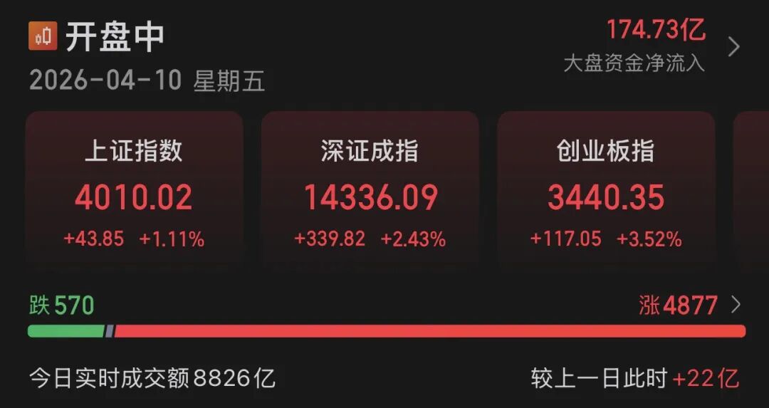 截至发稿,上证指数拉升涨1.11%,报4010.02点,时隔14个交易日重回4000点。