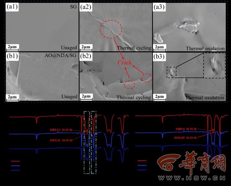 研究进一步揭示了AO@NDA/SG复合封装材料的抗老化机制。通过扫描电镜、红外光谱和X射线光电子能谱等多种手段,团队发现,该材料能够在填料与基体之间形成稳定的C–Al化学键,从而有效抑制硅凝胶分子链的氧化断裂以及Si–CH₃基团的降解。这一界面调控显著减缓了老化过程中自由体积的扩张和陷阱能级的劣化。实验数据显示,经过500小时热氧老化后,AO@NDA/SG的击穿强度保留率高达91%,而纯硅凝胶仅为76%。在全封装模块测试中,采用新方案的功率模块局部放电起始电压相比传统封装提升了26%。