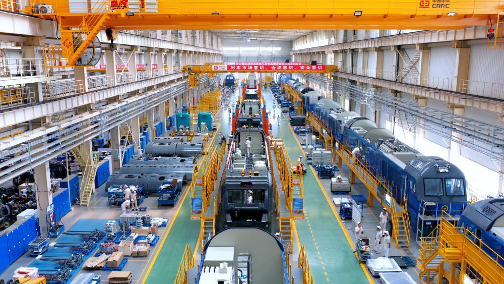 2025年8月12日,在中车大连机车车辆有限公司,工作人员正在进行总装作业。(受访单位供图)