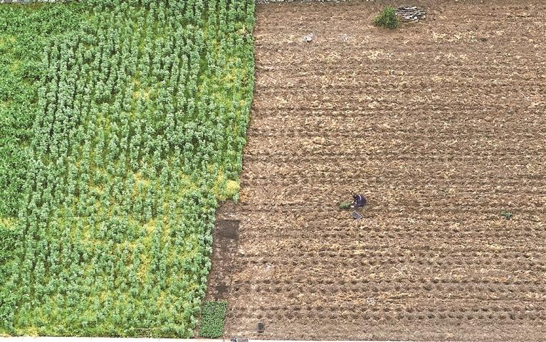 雨后初霁忙春耕。图为4月12日,平利县西河镇磨沟村村民在地里移栽作物秧苗。