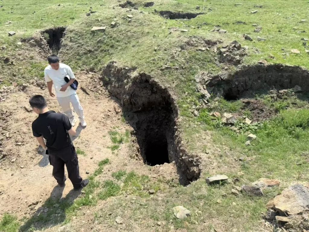 盗墓团伙打的盗洞。通辽警方供图