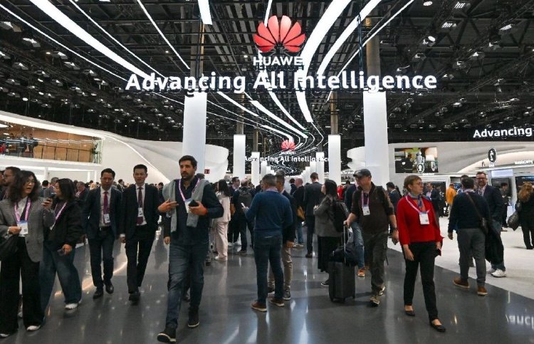 在西班牙巴塞罗那,人们在华为展区参观/新华社记者 程敏 摄