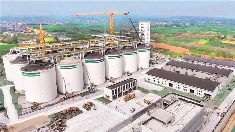 建设中的粮食仓储基地。 本报记者 任荣 摄