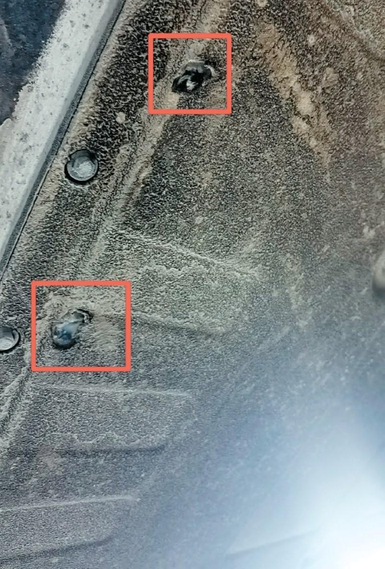 杨先生租的网约车底盘电池保护涂层有两个玉米粒大小的凹坑