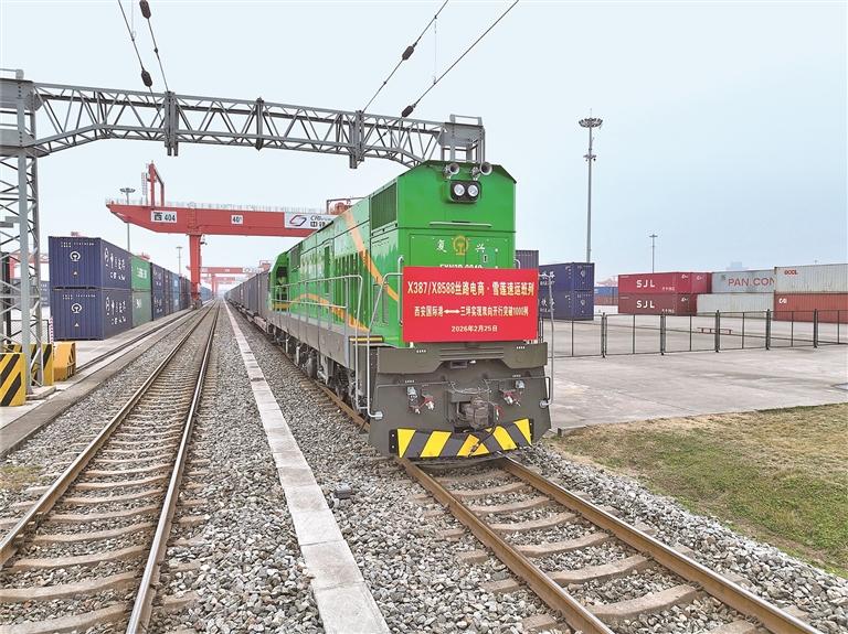 “2026年一季度,中欧班列(西安)开行1631列,同比增长7.4%,较去年提前19天突破千列大关。截至目前,中欧班列(西安)国内集结线路达26条,‘内陆集结、全球分拨’物流网络日趋完善。”西安铁路局西安国际港营业部值班主任刘顺利表示,西安铁路局将持续推进西安国际港站智能化升级,建成投用“1+3+8”智能化应用体系。客户可通过“铁路货运95306”小程序预约进出园区、导航作业地点,全流程更加便捷高效。