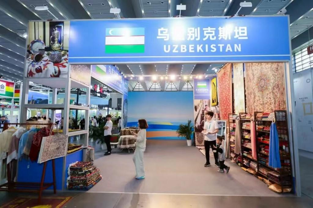 国外展团也各具风情:埃塞俄比亚展台以咖啡为主题,现场醇香弥漫,仿佛置身咖啡故乡;马来西亚展台色彩缤纷,文旅宣传展示热带风情拉满;乌兹别克斯坦展台则陈列着流光溢彩的丝绸织物、绘制着繁复青花图案的釉陶器与绣满金线的手工刺绣服饰,尽显中亚古国的匠心与华美。