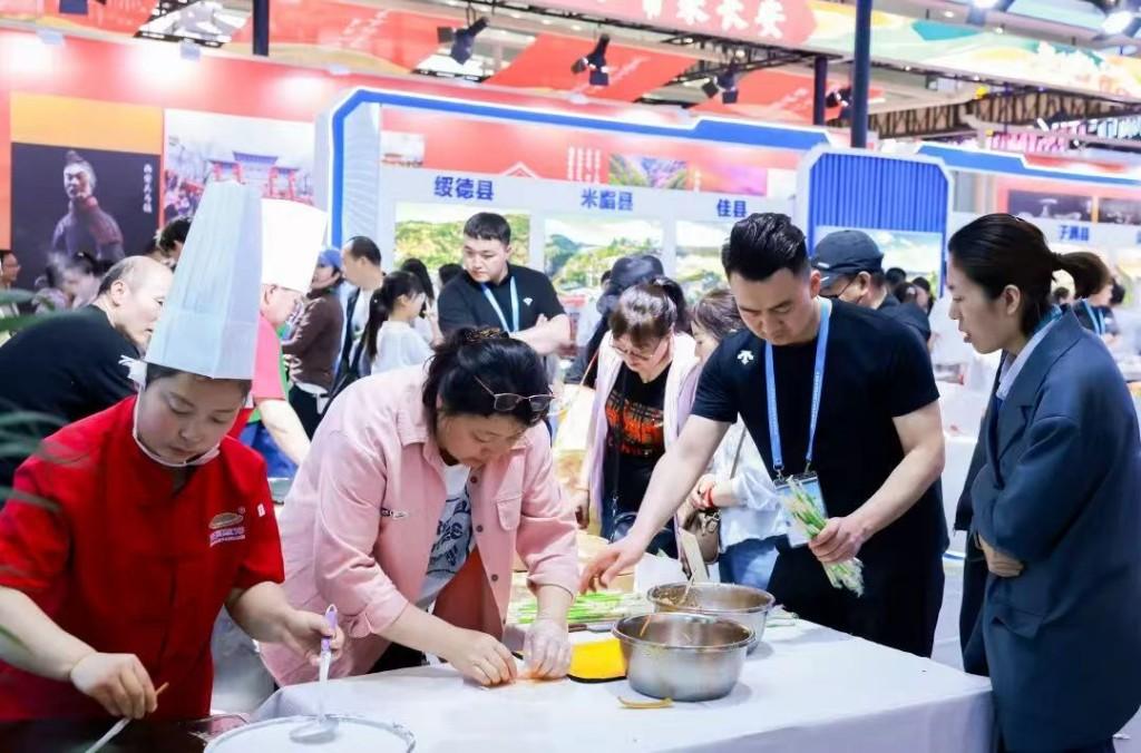 延安展台则化身陕北美食聚集地,子长煎饼、吴起羊肉剁荞面等特色小吃悉数亮相。“延安展台烟火气特别浓,能吃到地道延安小吃”,带着孩子逛展的王女士表示,自己曾多次前往延安,对当地美食很有感情,此次在旅博会能吃到延安特色美食非常开心。