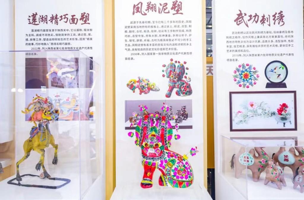 铜川展台的耀州瓷拉坯、刻花等非遗技艺展示,也吸引了众多游客上手体验。宝鸡、渭南展台现场则展示西府刺绣、凤翔泥塑、剪纸等非遗技艺,一针一线、一塑一剪,尽显指尖绝技。