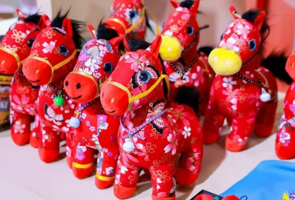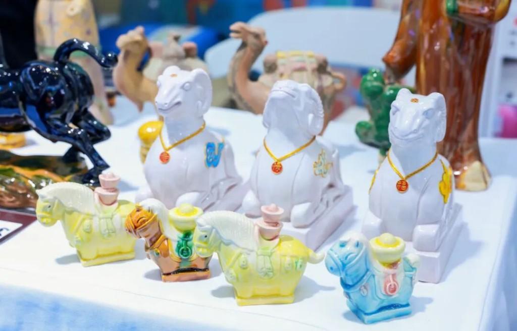 陕西省文物局展台荟萃省内各地市博物馆特色文创,西安博物院的镇馆之宝三彩腾空马同款文创三彩小摆件,色彩鲜艳、做工精美,很好地还原了馆藏文物的盛唐韵味。碑林博物馆在马年爆火的系列文创——昭陵六骏毛绒挂件也亮相展会,凭借紫色鬃毛帅气出圈的“飒露紫”,更是一开展就卖到脱销。