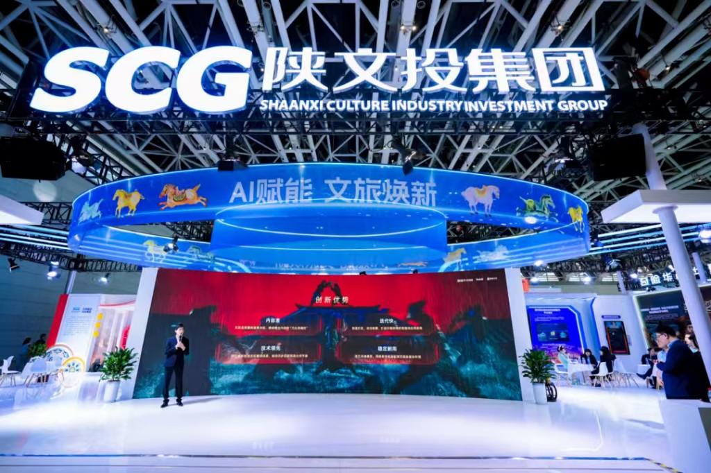 陕文投展台以“AI赋能 文旅焕新”为主题,现场呈现了博观文旅大模型、赳赳大秦、长安十二时辰等特色项目,通过实物展陈与互动体验,展现AI赋能文旅的全新场景。