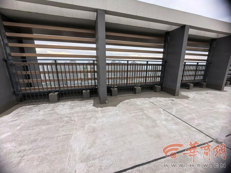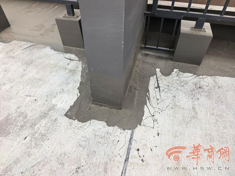 在1号楼通往楼顶的楼梯口堆了许多防水涂料桶,楼顶各个边角都刷了防水涂料。1号楼业主说,之前顶楼业主反映房子渗漏,开发商安排人员处置,从目前情况来看也就是用防水涂料刷了一下边边角角。“可是顶楼渗水说明保温层下的防水层可能是整体出现了问题。我们这是新房,楼顶防水出了问题不做整体系统处理,只在表面将就,这是负责任的态度吗?”