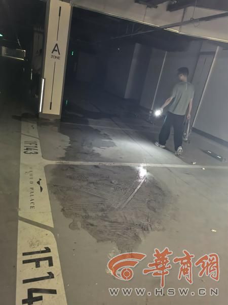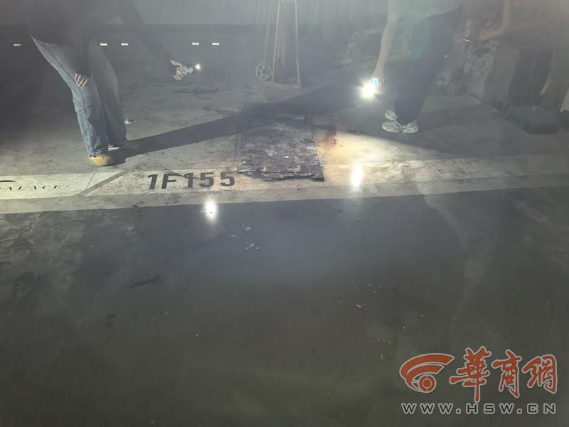 除了上述位置,在1号楼、2号楼地库内的多个地方,都发现地面上有积水,有的可能因为时间长了已经发臭。