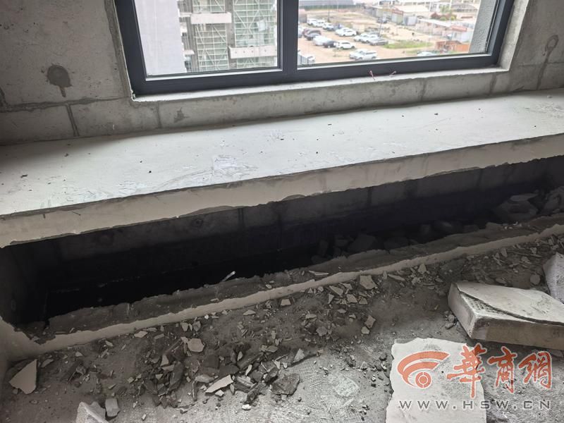 在11号楼2单元6楼一家业主房内,记者看到卧室飘窗的窗台侧面被砸掉后,里面积水最深处约20厘米。因为飘窗外面就是外墙,有业主怀疑可能就是因为外立面和保温层之间没做防水,因而水从外墙渗了进来。但也有业主告诉记者,关于积水来源有置业顾问说是当时专门就飘窗做过试水检测,之后水未抽干就直接把飘窗窗台封起来了。