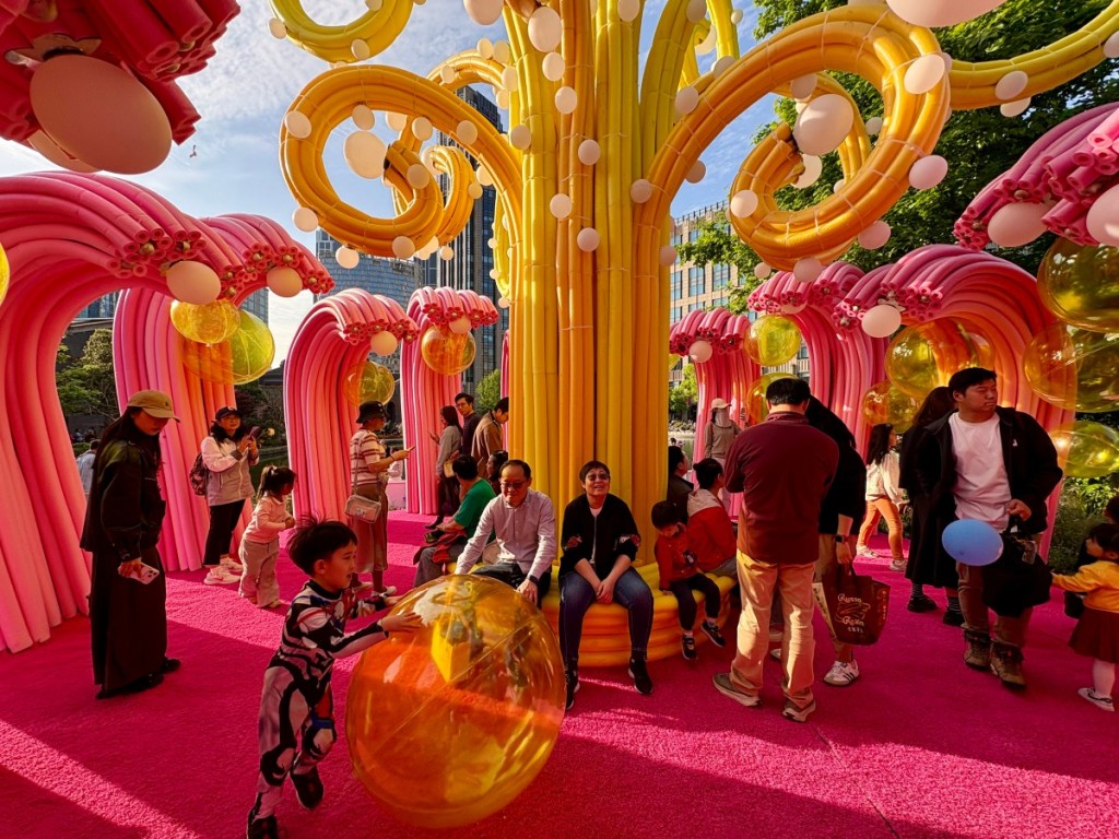4月18日,浦东前滩迎来大客流,游客争相拍摄花艺装置。澎湃新闻记者 朱伟辉 图