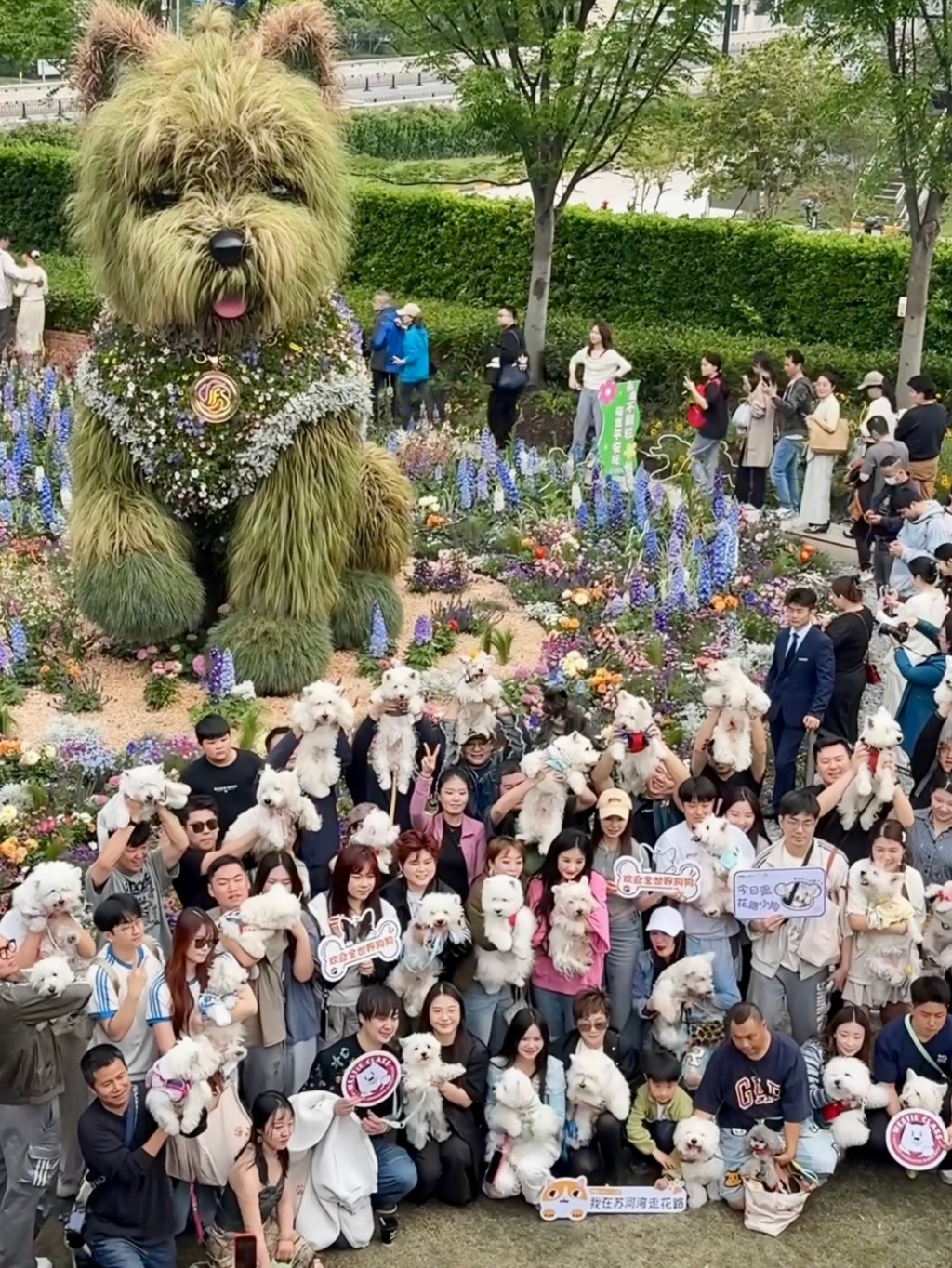 刚刚过去的周末,2026上海国际花卉节在全城掀起赏花热潮。静安苏河湾被西高地犬包围,5.2米高的“潦草小狗”绿植雕塑吸引了宠物主们自发组团合影;浦东前滩把“动物园”搬到了街区,层层叠叠的镜头对准了各种动物造型的花卉装置,网友直呼“感觉有1亿人在前滩”。