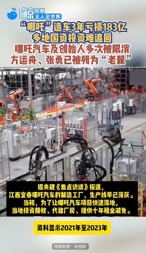 4月22日,据东方财经,哪吒汽车近日再度引发争议。据央视新闻,2021年至2023年,“哪吒”汽车的母公司合众新能源公司,累计净亏损高达183亿元。2025年下半年,合众新能源被债权人申请“破产重整”。此外,还有多地国资深陷其中,至少有8个亿难以追回。