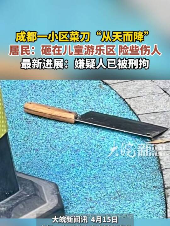 4月15日,成都一小区发生高空抛物事件,一把菜刀“从天而降”,让不少居民感到后怕。4月23日,大皖新闻记者采访获悉,事发后,警方介入,目前嫌疑人已被刑事拘留。