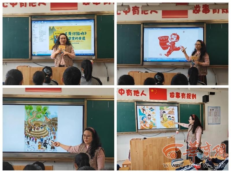 李老师以自己的新作《黄河鼓响》文字里的非遗为引,把藏在文字里的非遗故事娓娓道来。“你们听,这鼓声从黄河岸边的黄土坡上传了上千年,敲过了秦汉的风,打过了唐宋的月,今天就传到了我们耳边呀。”她从黄河岸边的鼓灵儿讲到跟着鼓声长大的黄河娃娃,把文化寓意揉进了鲜活的故事里,铿锵的鼓点仿佛从书页里跳了出来,落进了每个孩子的心里。