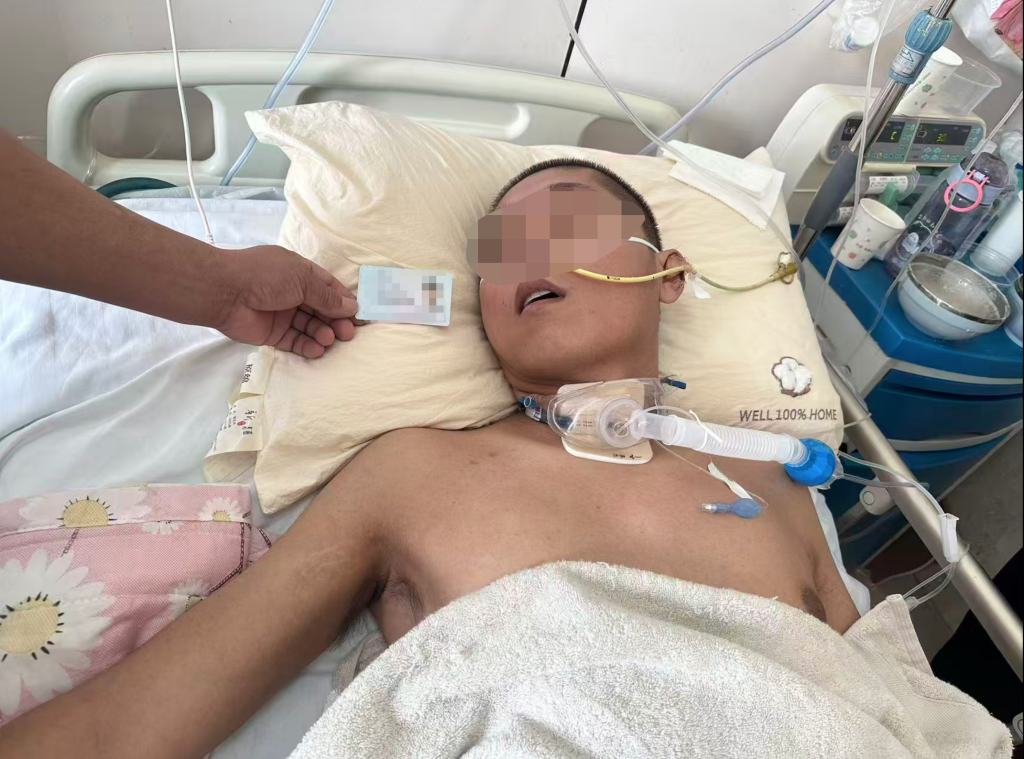 如今,32岁的朱晨阳一直卧床,大小便无法自理,不认识人,不能语言表达,喊他也不会答应,触电的那只手也一直僵着。