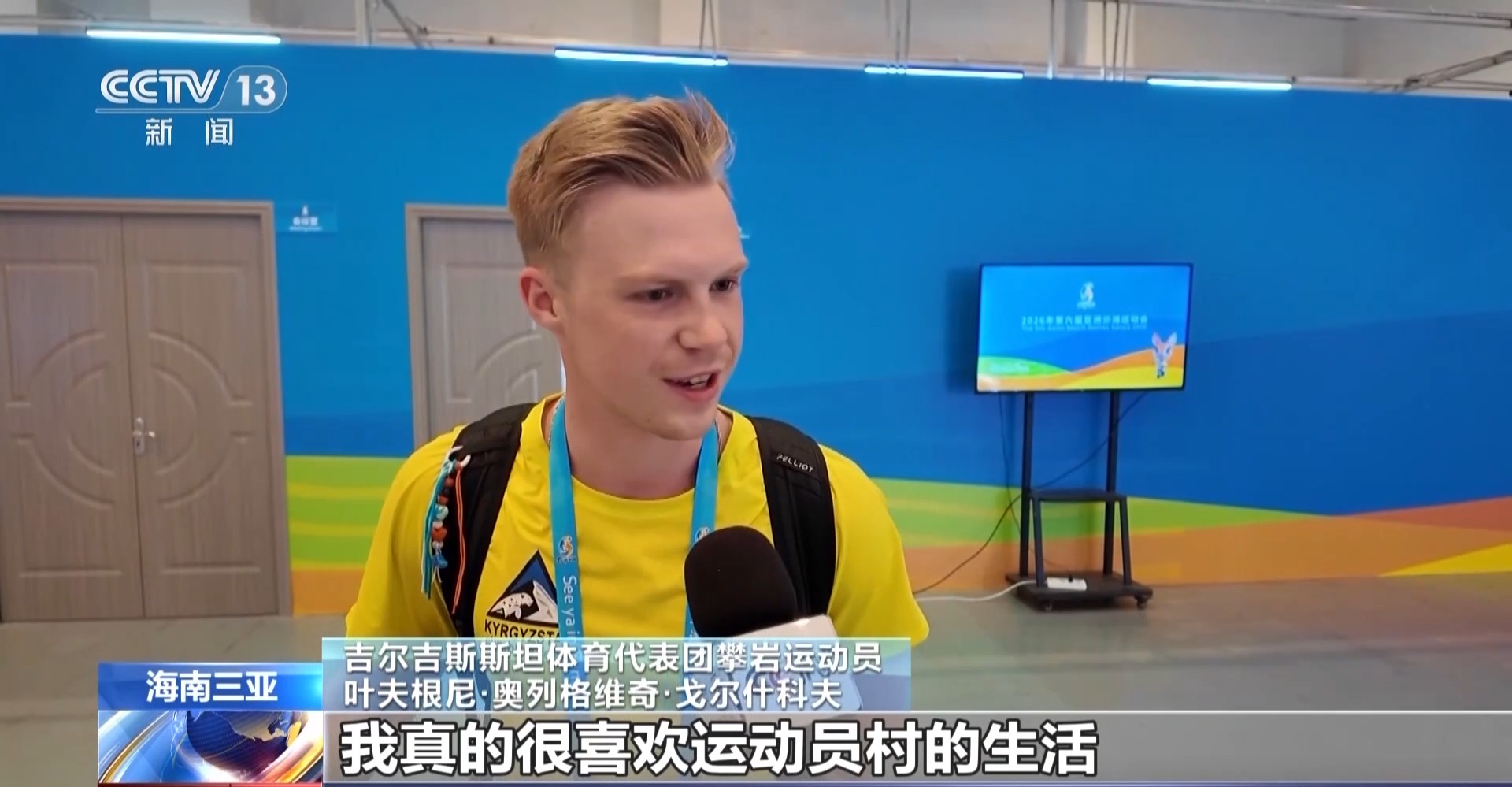 吉尔吉斯斯坦体育代表团攀岩运动员 叶夫根尼·奥列格维奇·戈尔什科夫:我真的很喜欢运动员村的生活,尤其是这里的美食。
