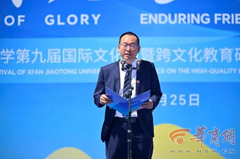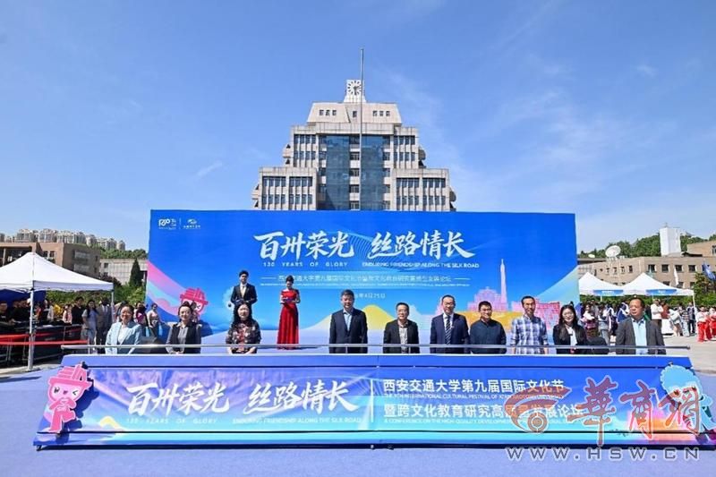 单智伟、王胜刚、高进孝等嘉宾共同推动象征着多元文化交融与丝路友谊传承的启动轴,西安交通大学第九届国际文化节正式开幕。