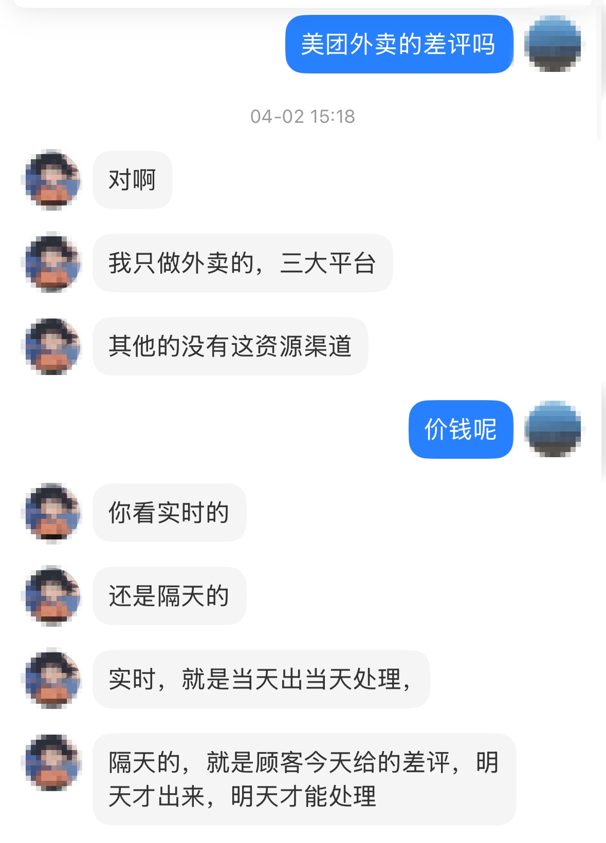 开展代申诉操作前,删评人会先和商家反复确认差评的具体内容,再据此确定删价费用和完成时限,“小红书帖子下的负面评论不用看内容,美团、大众点评、抖音团购、小红书团购的差评则需要看具体评价内容再定价”。